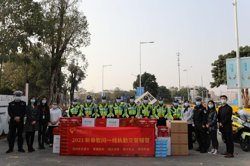 见证客户端·深圳新闻网2021年1月28日讯(记者 常军平)“留深过大年,关爱满鹏城”。昨日,第十八届关爱行动举行了关爱交警辅警活动,市关爱办联合恒大冰泉等五家企业,向南山、光明两区交警送去新年大礼包。