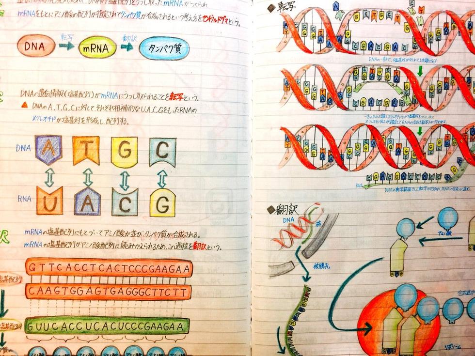 近日,一名日本男生在网上公布了自己高一时的笔记,生物、地理等等课程的笔记在他的笔下变得生动有趣起来,堪比教科书。图/Twitter用户@おおしま