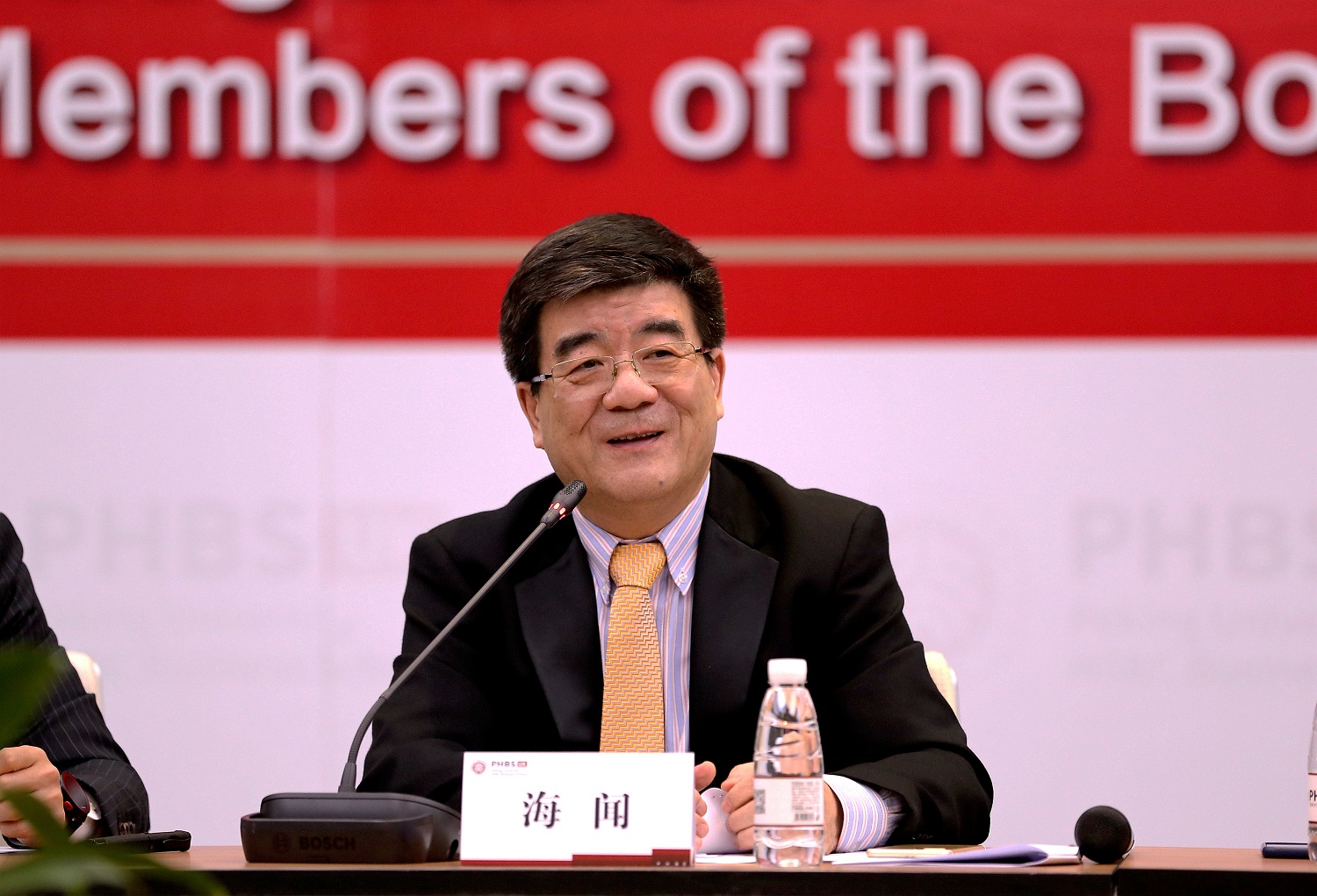 在介绍校董会人员组成和发展基金情况时,海闻院长特别感谢各位创始校董长期以来对学院发展,特别是英国校区创建给予的关注和支持。他强调,英国校区的创建是一件具有历史意义的事件,因而被很多媒体称为“中国高等教育发展的一个重要的里程碑。”海闻院长相信,在各位校董的关心支持和全院师生员工的共同努力下,北京大学汇丰商学院英国校区一定能够成为“英国教育天空中一颗来自中国的明亮之星。”