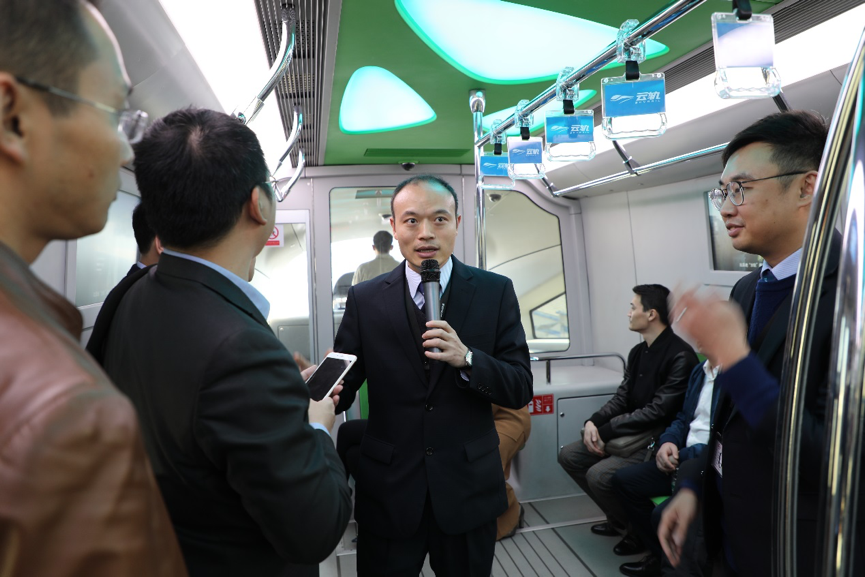 随后,同学们亲身体验了比亚迪自主研发的跨座式单轨—云轨。云轨是比亚迪为解决城市拥堵问题历时5年,投资50亿倾心打造的跨座式单轨。具有造价低、建造周期短、占地面积小、噪声低乘坐舒适等特点,采用全铝轻型和流线型车身设计,搭载铁电池储能系统、永磁轮边直驱电机、能量回馈系统和无人驾驶系统等领先科技,创造市民绿色出行新体验。云轨自推出以来市场反馈热烈,全球各大城市签约动作频频,陆续开建落地,前景非常广阔。