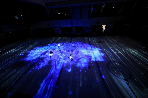 在灿星闪耀的寰宇星空中,一颗种子轻盈坠落沃土,种子破土向上,不断攀援生长,从树苗逐渐成长为参天大树,全明星俱乐部的冰舞演员们在生长的线条中轻盈舞动,滑行旋转,象征益田转型升级,埋下商业的种子,成就了益田假日广场的诞生与发展;3D投影将冰面瞬间幻化为海面,在汹涌的海面中,海鸥飞翔,海豚跳跃,一艘游轮驶过,随着海上小提琴手的悠扬琴声,海面上不断浮现从2008-2018年的光影,犹如跟随游轮的航线驶入时光隧道,以这样的形式展现益田假日广场这艘“都市豪华游轮”在深圳商业市场中勇立潮头、奋勇向前的势头,更以此与大众一起回顾了10年来的精彩瞬间;阳光洒下,红裙歌者婷婷矗立冰面中央,裙摆变化为绽放的花朵,无数的花朵铺满冰面,花朵又幻化为象征益田假日广场LOGO的蝴蝶灵动起舞,闪动出无数顾客的笑脸汇集成“十年,向新而生”!18分钟的光影秀现场,高潮迭起,惊喜不断。