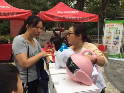 深圳诺必达节能环保有限公司的智能机器人受到小市民的青睐。小小机器人伙伴不仅能唱歌背诵,还能查询及辅助学习,可以成为学生市民的“知识百科库”,也是家长联系孩子的桥梁。在活动现场小市民纷纷前来与机器人互动,深刻感受着科技正在改变我们的生活。