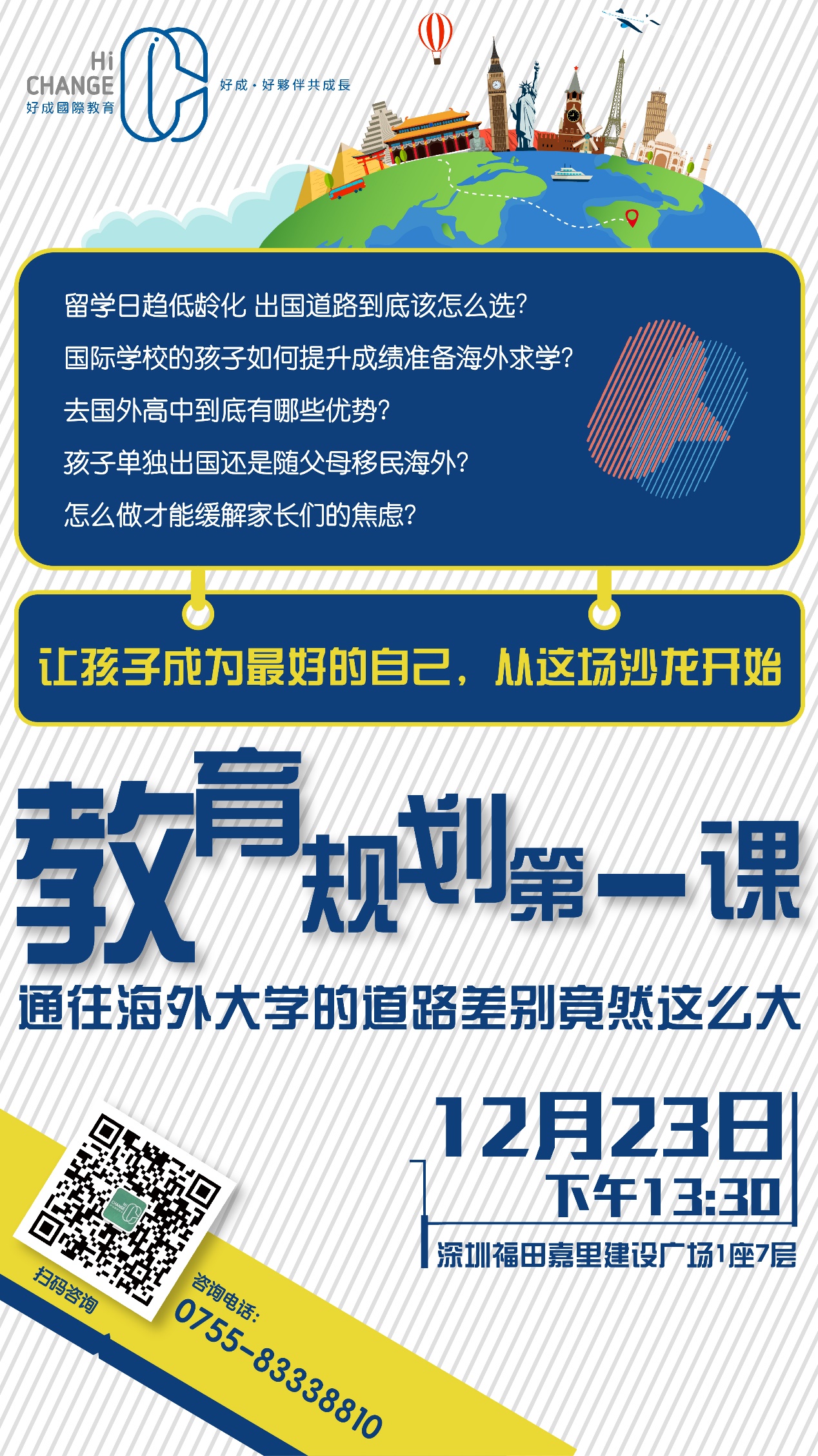 如何才能得到资深教育行业专家的指导?为孩子规划一条平坦的出国之路,成了不少家长的一件“心事”。现在,就有这样一个机会,让家长们能与资深教育行业专家面对面接触,为孩子从小规划一条直通世界名校的畅通之路。