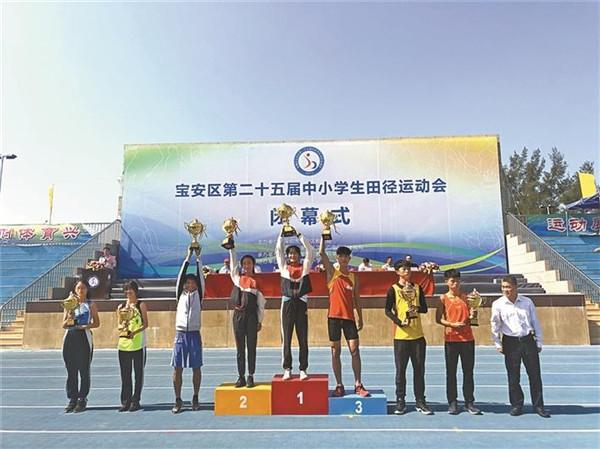 ▲沙井中学高中组蝉联宝安区第二十五届田径运动会团体总分第一名。