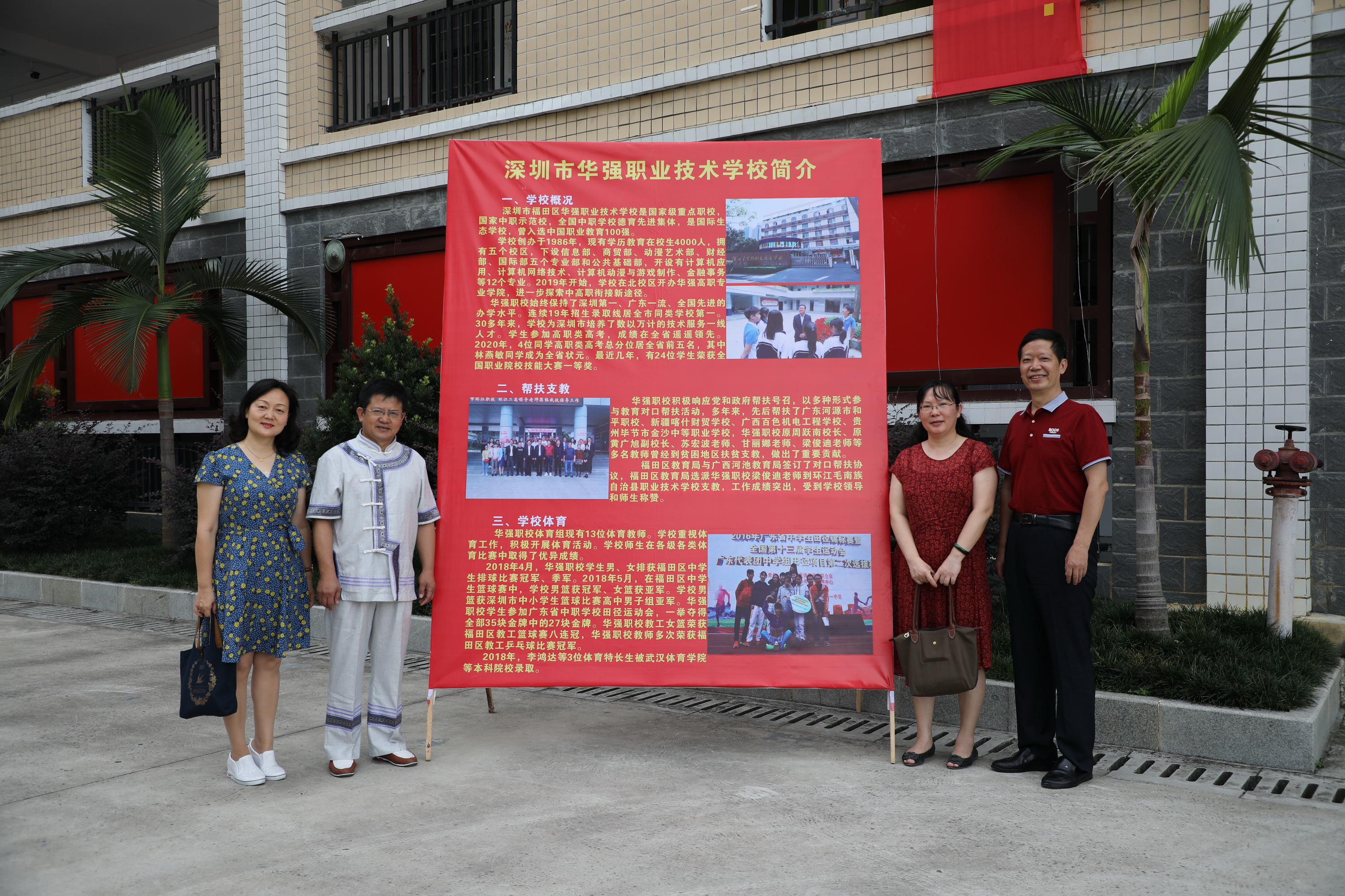 见圳客户端·深圳新闻网2020年6月24日讯(记者 曹园芳 通讯员 李三平)近日,深圳市华强职业技术学校党委会李三平副书记一行5人组成的代表团受赵盟校长委托,代表学校远赴千里以外的广西环江毛南族自治县看望学校支教老师,并送教到环江职校,开展帮扶捐赠活动。代表团成员有工会副主席杨玉华,办公室副主任赵艳,教学处副主任岳元,工会委员、西校区副主任任志豪。