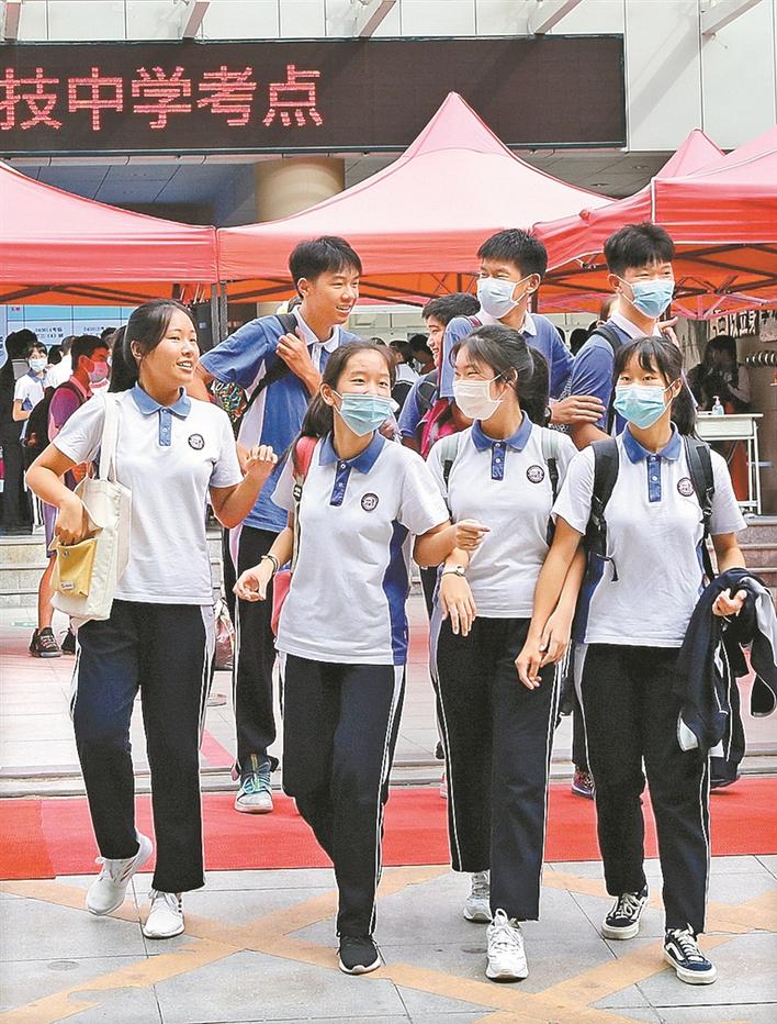 昨日下午,福田区科技中学考点,考生们走出考场。