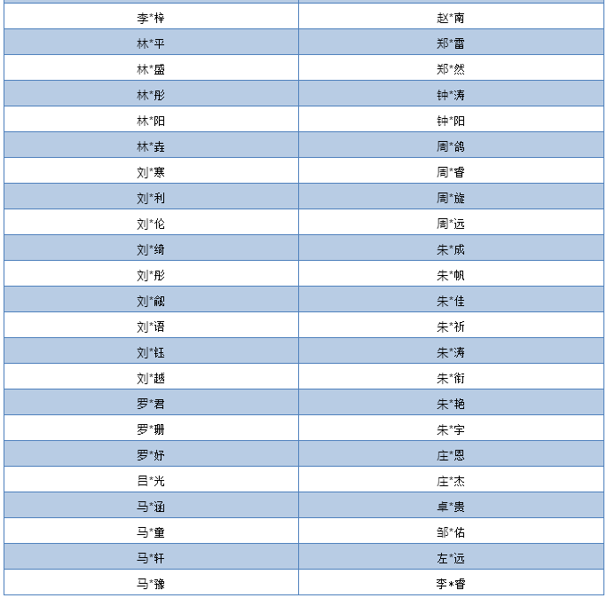 本批公布名单以姓氏首拼排序,排名不分先后,8月仍有晋级名单近期持续公布中。本期公示学生代表名单均为线上报名文友,未包含集体报名参加的学校,以学校集体报名的另行公布。