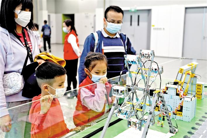 迎春科技展活动吸引孩子们的目光。
