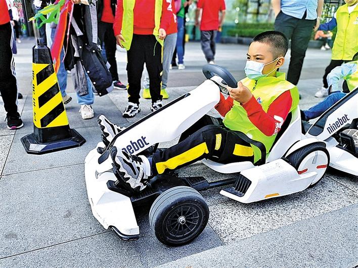 青少年体验卡丁车项目。