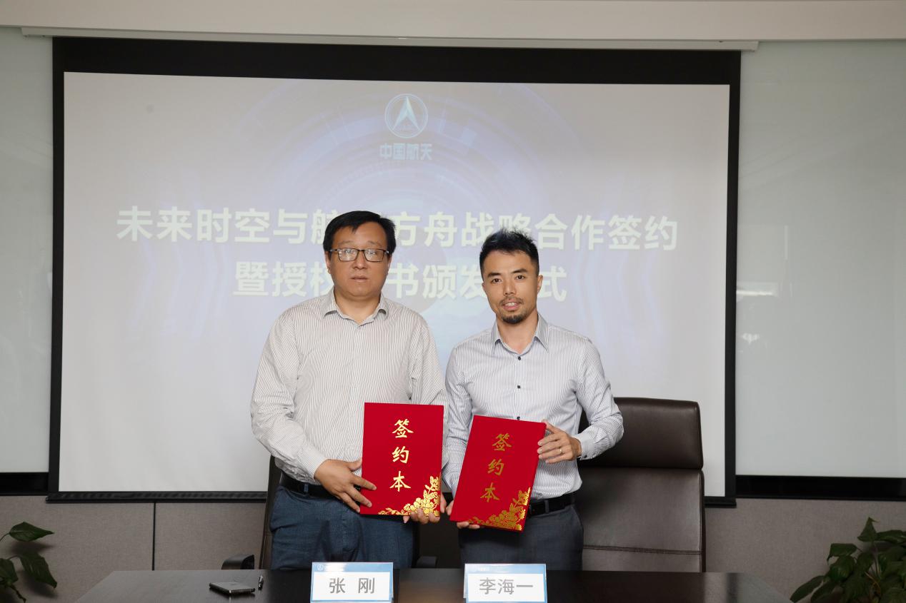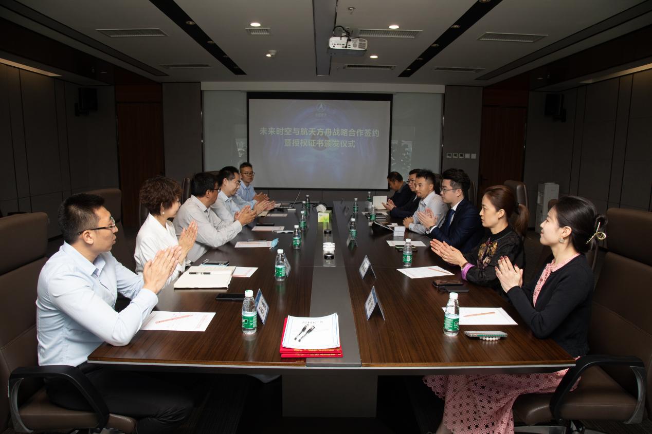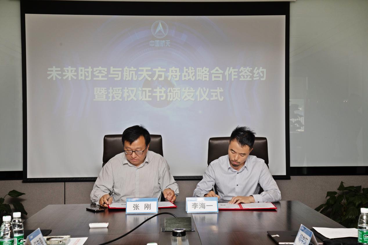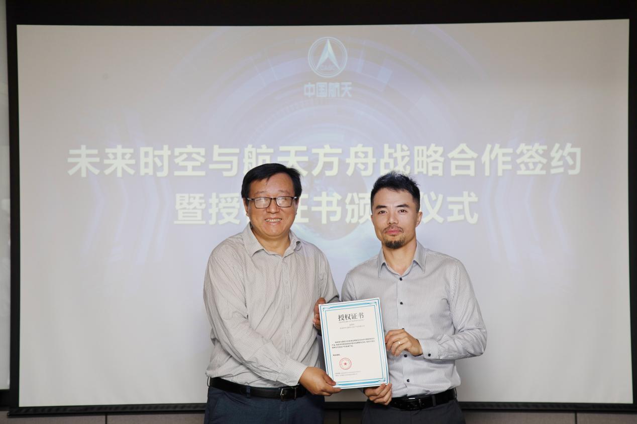 见圳客户端·深圳新闻网2021年5月31日讯 (记者 陈彬)为深入推进航天科技文化技术在社会生活、人民健康、科普教育、素质教育和文化产业等领域的成果转化和广泛应用,在中国航天系统科学与工程研究院有关领导的关心帮助下,未来时空(深圳)文化产业有限公司和北京航天方舟空间技术有限公司就航天文创产品开发、航天康养项目建设、航天科普教育及商业化航天器应用等方面达成了全面合作,于5月28日上午在北京签署战略合作协议并颁发授权证书。