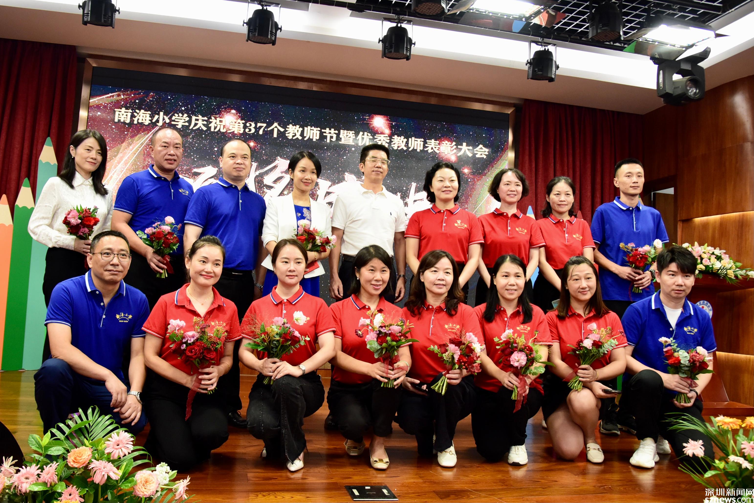 读特客户端·深圳新闻网2021年9月10日讯 (记者 曹园芳)赓续百年初心,担当育人使命。9月9日下午,伴随着下课铃响,深圳市南山区南海小学教师齐聚一堂,共同庆祝第37个教师节,并对优秀教师进行表彰。南山区教育局陈登福副局长,南海小学高鹏校长、李惠副校长、商洪德副校长等领导嘉宾出席了活动,并为优秀教师颁奖。