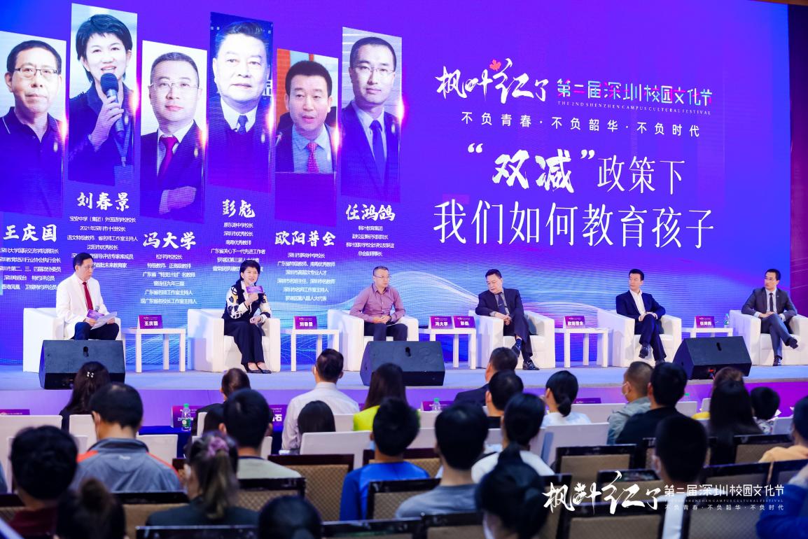 下午,现场举行“双减政策,该如何教育我们的孩子”专家论坛,深圳大学国际交流学院原院长王庆国、罗湖区第三届人大代表彭彪、宝安中学(集团)外国语学校校长刘春景、松坪学校校长冯大学、笋岗中学校长欧阳普全、枫叶教育集团副校监兼研究院院长任鸿鸽等六位嘉宾出席本届论坛。围绕双减政策下,如何教育孩子?进行深层次的探讨,分享各自的观点与建议,为广大学生与家长解疑答惑。