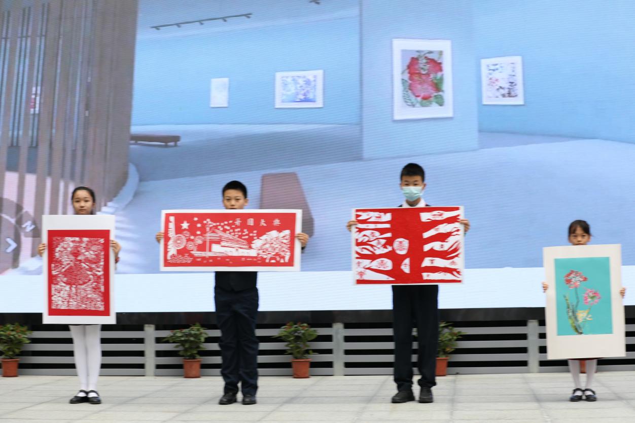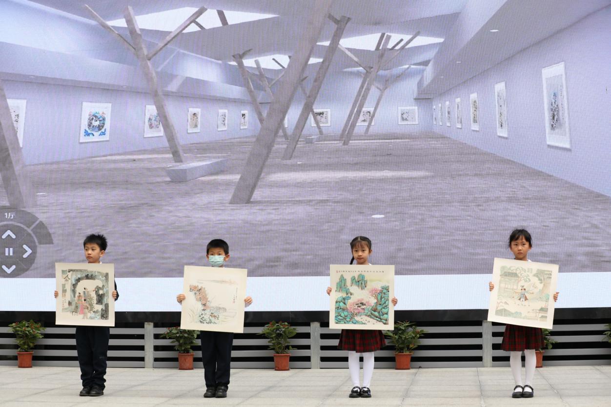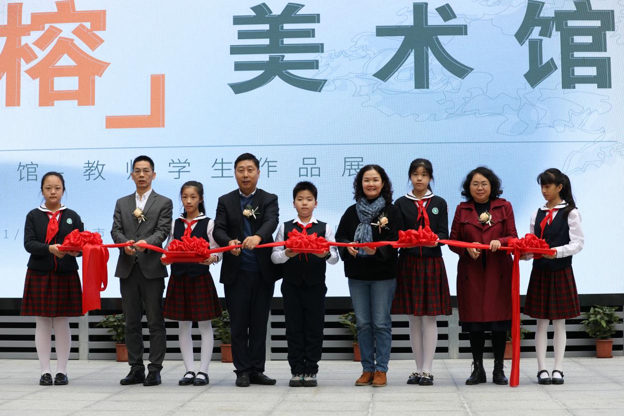 与开馆和展览同时推出的,还有“榕”美术馆的云展馆。云展馆以新媒体形式,扩大了展览范围,使得学校的美术美育成果得以向外部展示。推出之际,学校举行了云展馆的剪彩仪式。解署昱校长致辞并宣布开馆,福田区教科院艺术办林影萍主任、解署昱校长、刘权祥副校长、姚红霞副校长为云美术馆剪彩,并向全校学生赠送了云展馆资料。