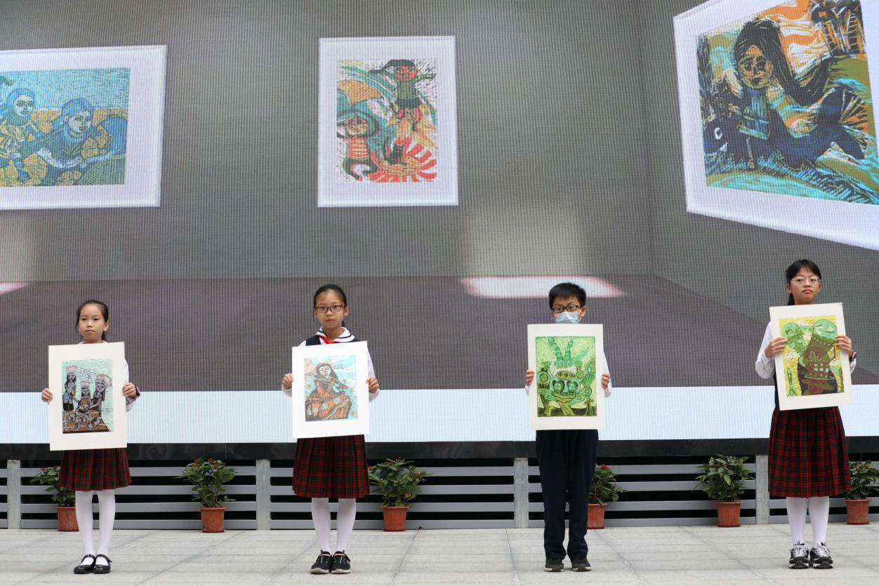 仪式中,学生代表将云展馆的文创礼品赠予了各位嘉宾,6个美术类社团也向嘉宾们展示了异彩纷呈的美术作品。开馆仪式在掌声中圆满结束。