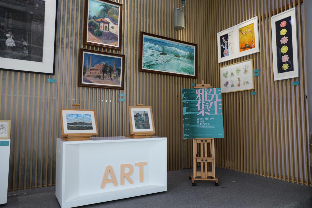 福田小学教师多才多艺,为了迎接新年在学校新建的榕美术馆展出了各学科老师们的手工绘画作品,这也是一个美的展示空间。