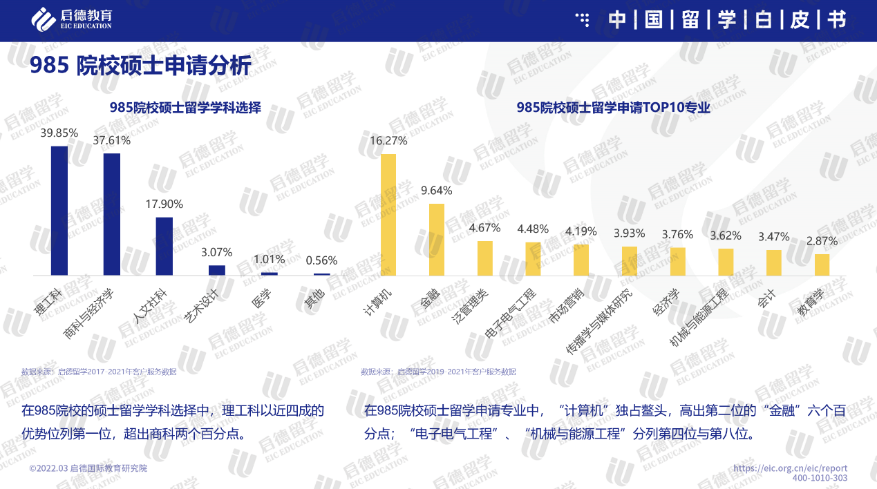 985院校硕士留学理工科占优,传播学与媒体研究成文科类王牌专业