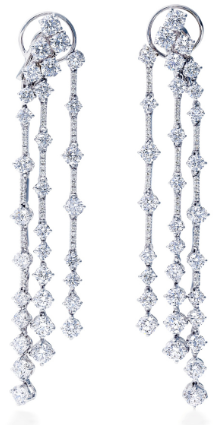 De Beers戴比尔斯 Arpeggia三层钻石垂坠耳环 –特选圆形明亮式美钻镶嵌排列于18K白金底座之间,晶莹的钻石闪耀着颤动的光芒,既像悠扬的琶音,又像起舞的精灵。