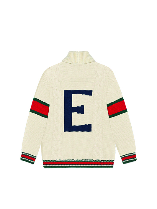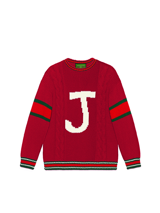 男女适穿的针织共三款:圆领衫、纽扣开衫和青果领飞行员夹克,均采用100%纯羊毛及3针绞花针织工艺。腰间、袖口和袖子上饰有灵感来自品牌标志性条纹织带的的条纹图案。定制字母分别饰于圆领衫的正面及开衫、夹克的背面。DIY针织单品的标签上以金色字母与双G互扣图案搭配条纹织带,且搭配印有”ABCDEFGucci”字样的别致包装,更添趣味。