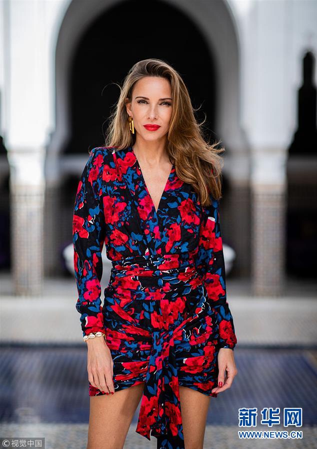 博主Alexandra Lapp街拍:印花围裹裙尖头高跟鞋高挑
