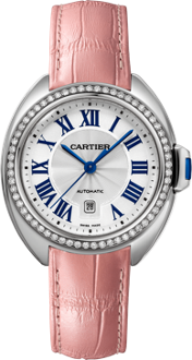31毫米表款,精钢,表圈镶钻,粉色鳄鱼皮表带