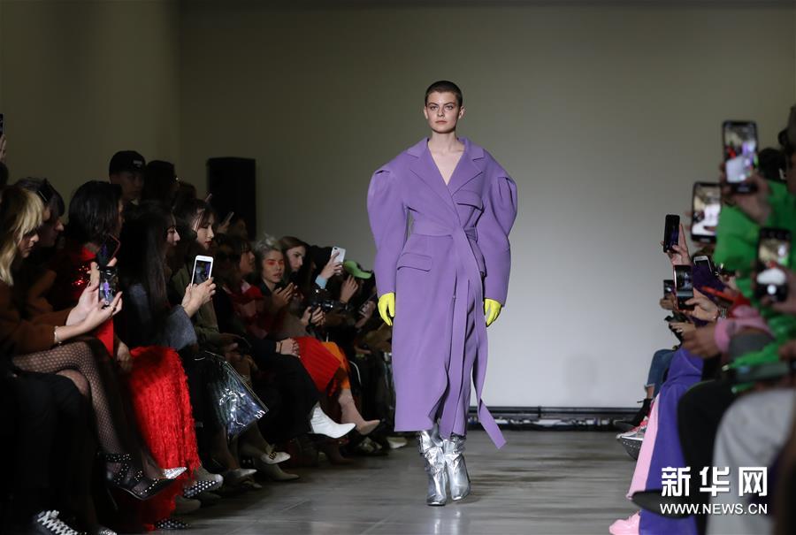 新华网2019年2月21日讯 2月20日,在意大利米兰,模特在米兰时装周上展示中国设计师品牌ANNAKIKI2019年秋冬系列时装。新华社记者程婷婷摄