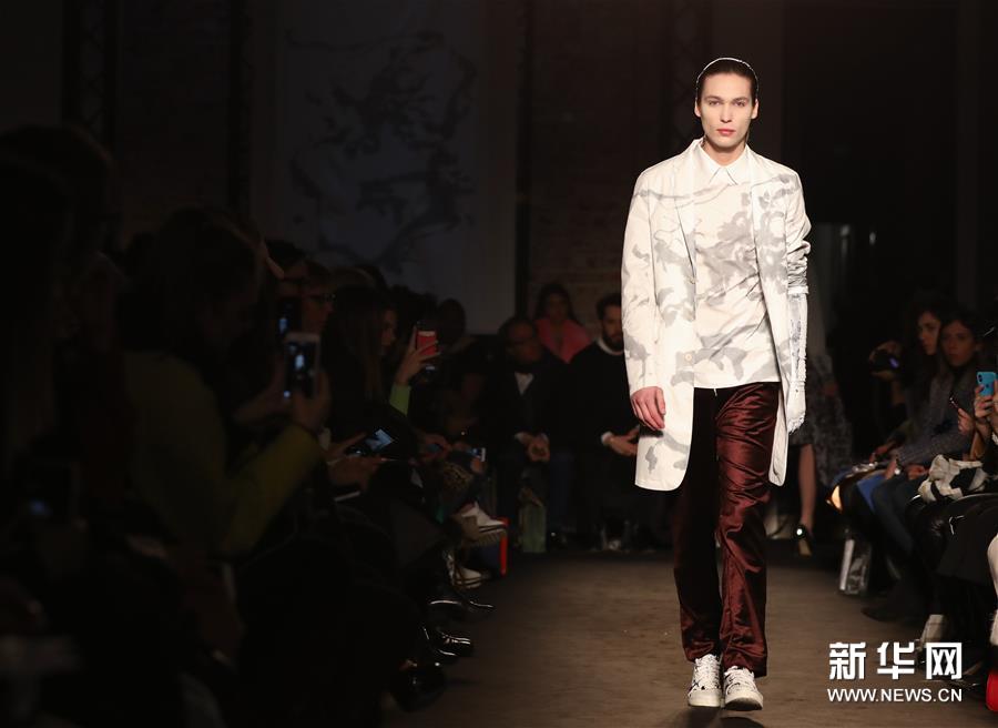 2月24日,在意大利米兰,模特在米兰时装周上展示Atsushi Nakashima品牌时装。新华社记者程婷婷摄