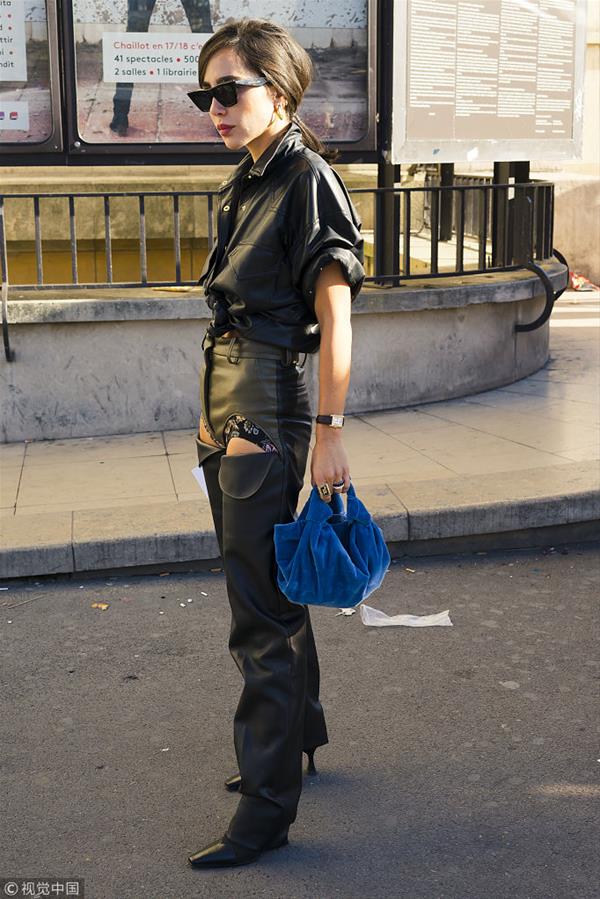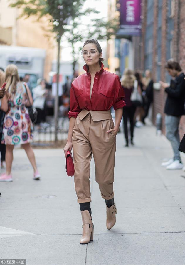 新华网2019年3月28 日讯 短暂的春天也要穿的时髦又有型,可是怎么穿都觉得自己缺点“飒”?没试过时装周潮人们团宠的皮衬衫当然时髦度锐减。不管是单穿还是叠搭,皮衬衫硬朗挺括的质地保管你潮爆全场!(图片来源:视觉中国)