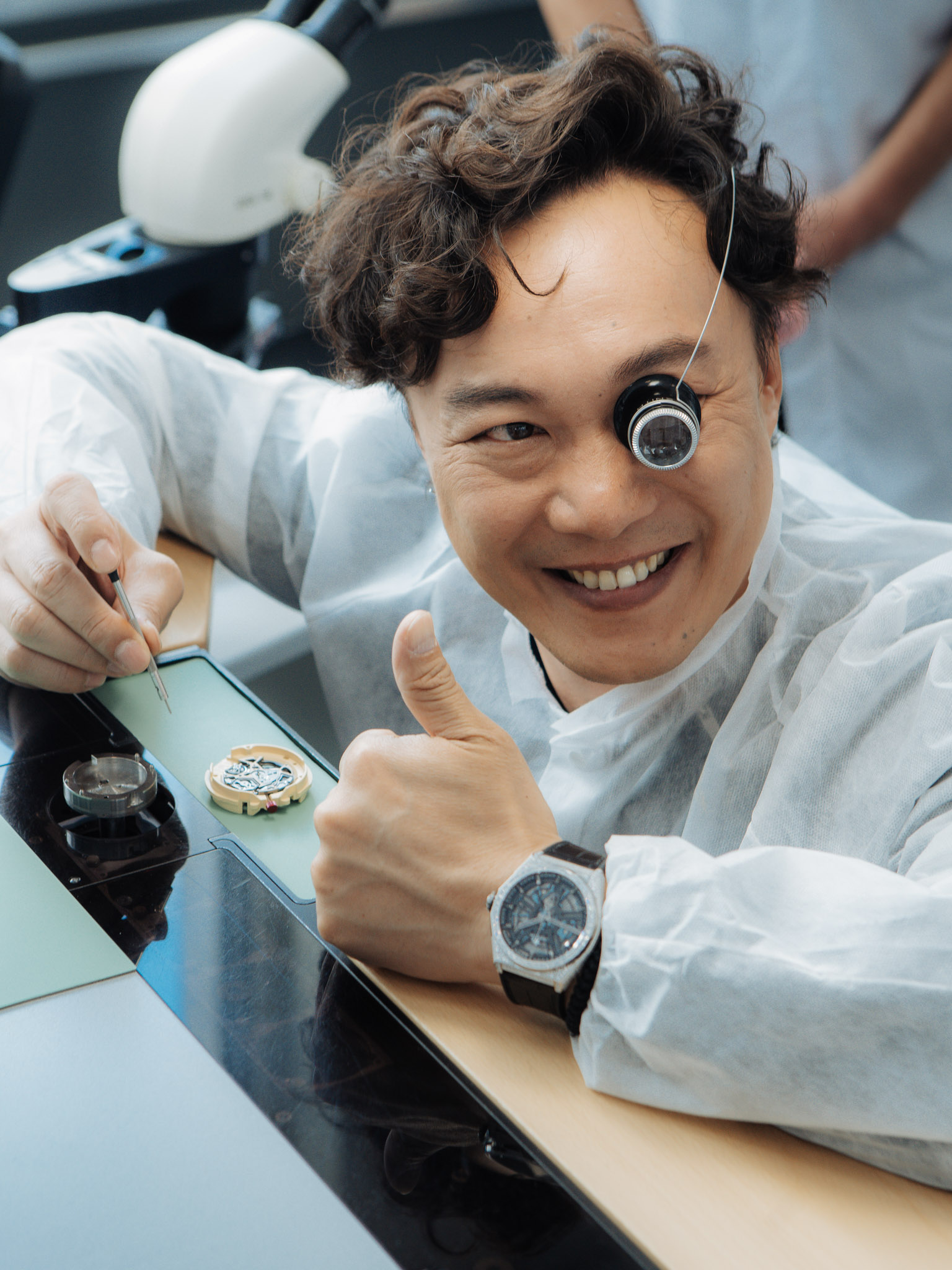 陈奕迅了解到,真力时始终坚持机芯自产,从机芯设计、基板打磨到零件组装,一枚精密巧致的EL Primero机芯由数百个零部件组成,需要动员20余位制表工匠花费9个月方能完成。在资深制表师的指导下,陈奕迅登上制表台,亲身体验了一把EL Primero机芯的组装过程。“当我为EL Primero拧上一颗螺丝,我感觉自己仿若进入了这枚机芯的奇妙世界。”陈奕迅表示。