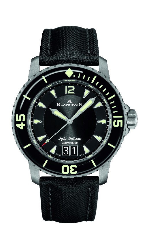 左:宝珀五十噚系列钛合金瞬跳大日期腕表,6点位大日期双窗显示功能首次运用于这一系列