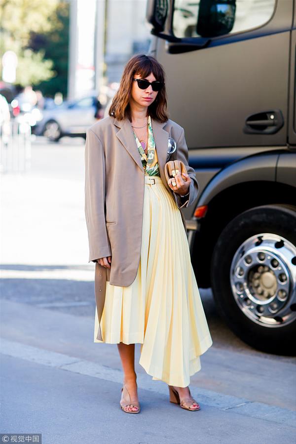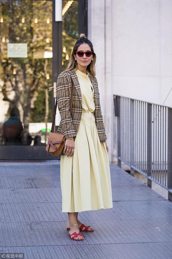 新华网2019年4月15日讯 春日街头百花争艳,外出游玩赏花踏青,面对高饱和度的自然美景,你需要做的是韬光养晦才更相得益彰,Pick春日街头再合适不过的清淡鹅黄色,不与百花争艳,做个清新柔美小仙女。(图片来源:视觉中国)