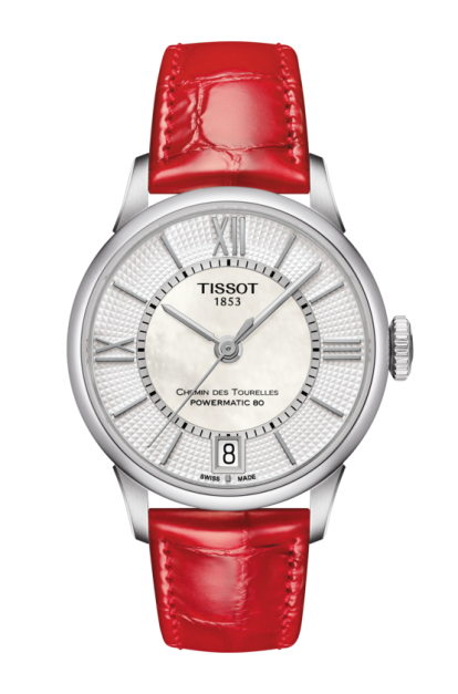图11-12:天梭全球代言人刘亦菲佩戴杜鲁尔系列红色皮带女表