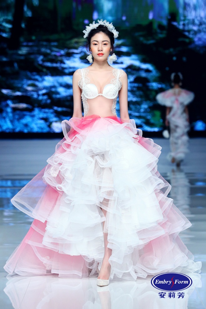 春水初生,春林初盛。安莉芳呈现了从万物复苏到繁花簇拥的春日花园,T台宛若花神走过,春意层层递进的浪漫情愫下,象征着Embry Form永恒优雅的主题。