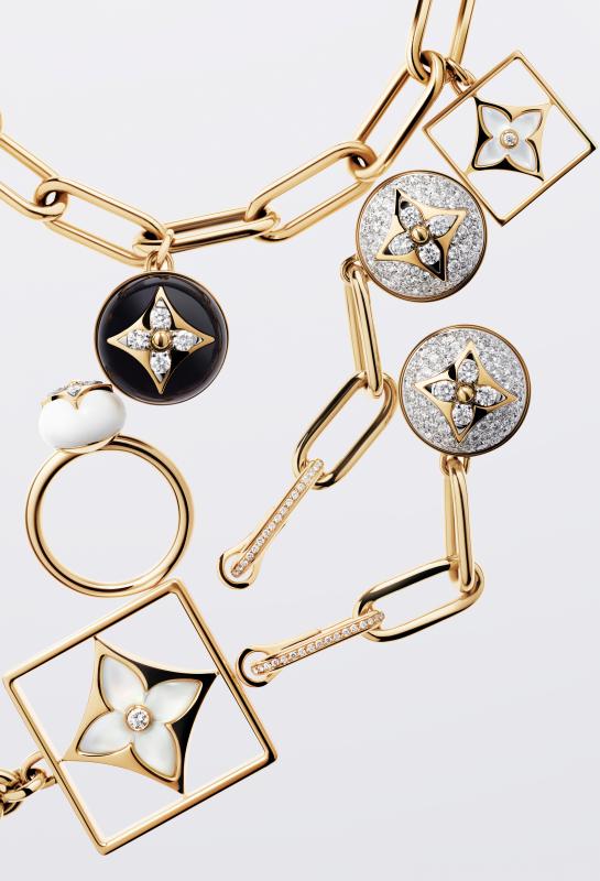 历史悠久的 Monogram花卉图案在多款玫瑰金及黄金的镶钻戒指、手链、手镯、耳环、吊坠与项链的闪耀光芒中再度绽放,凭借珍贵稀有的材质及严密精细的工艺设计幻化无尽的神奇魅力。