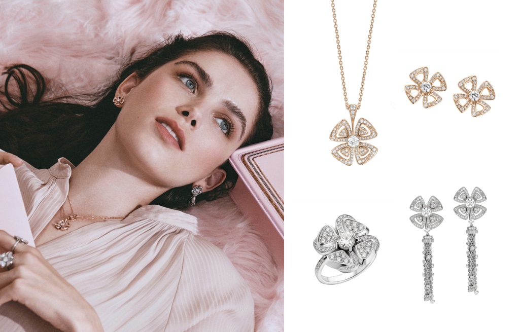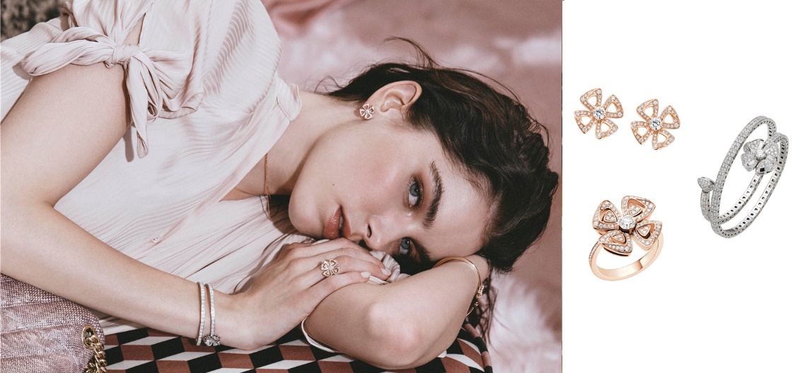 花朵造型成为宝格丽的又一标志性元素。 Fiorever咏绽系列珠宝,既有镶嵌奢华美钻的高级珠宝,也有摩登随性、适合日常佩戴的精巧作品。该系列包括项链、戒指、耳环、手镯,均以八瓣花朵为核心元素,但以不同姿态绽放。无论是幻化成为单枚花朵,抑或是闪耀花簇,皆迸发出和煦光芒,散发优雅、轻盈的浪漫气息。白金打造的款式纯净清澈,与钻石的光芒相得益彰;玫瑰金打造的花朵则更多几分明艳,举手投足间流露让人难以忽略的色彩。