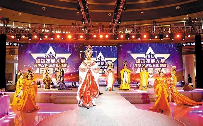 在当天的开幕式现场,同时举行了形象设计(美容)项目的决赛。44位决赛选手经过彩绘、实操及模特风采展示环节三轮比拼,最终决出了一二三等奖。本届形象设计(美容)决赛的主题是唐代贵妃装。记者在现场看到,44位经过形象设计装扮成唐代贵妃的模特,有的雍容华贵,有的端庄大方,有的秀艳可人,形态各异,各有特色,赢得现场观众的阵阵掌声。