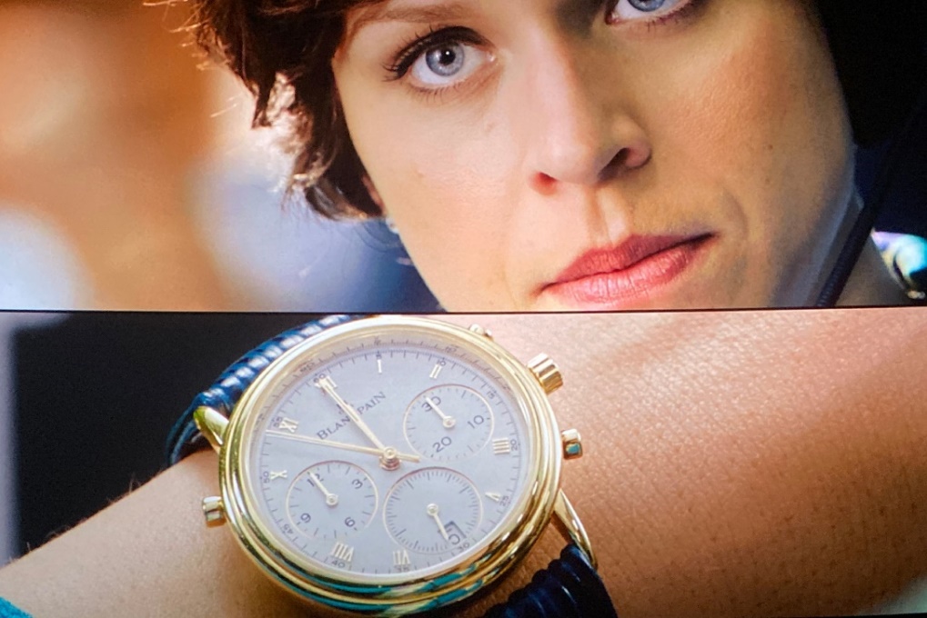 如果说惠英红佩戴的五十噚是“英气酷炫”的代名词,那么影片中另一块宝珀腕表则凭借着“大气优雅”的特质给人留下了深刻印象。几组镜头中腕表一闪而过,从双层表圈到罗马数字刻度,独特设计让人一眼分辨出这块腕表属于宝珀 Villeret经典系列。而通过对比表侧按钮及小表盘等细节,可以证得这款腕表是宝珀 Villeret经典系列双追针计时码表。这部影片一直和争分夺秒的时间密不可分,选择拥有业内顶级计时机芯的宝珀腕表也可见剧组还原历史的用心。