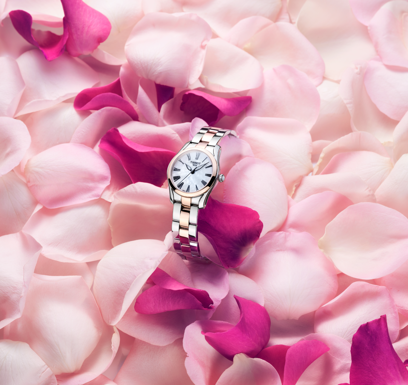 爱,是时光的见证,是每对爱侣迎接困难到来时的坚韧护盾。将无声的爱刻入时光,让时光带来温暖,带来无尽的希望,带来缤纷的未来。TISSOT天梭海浪系列女士腕表,记录暖春的到来和花开的声音。该款腕表用精钢搭配玫瑰金,展现浓烈的诗意与典雅的气息,乍看之下,腕表气质含蓄内敛,但随着时间流逝,才会逐渐尽展芳华。就如初见她时的怦然心动,执子之手,以时光提炼浓情,发现不一样的她,慢慢的,彼此的连接便更加紧密。天梭海浪系列间金款女士腕表的曲线设计流畅而柔软,将微妙又强烈的美感融入其中。从表带到表壳,双色飞舞,无尽变幻。表盘上点缀着低调精致的珍珠贝母,营造出了纯粹自然的氛围,与镂空花瓣形的纤细指针相得益彰。表冠镶嵌白色的阿加特宝石,宛若一枚珠宝,闪耀着典雅之美。