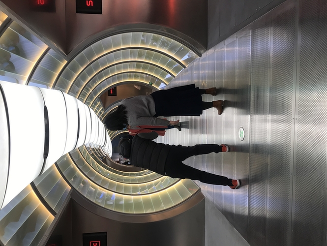 在南馆三层还尝试了隧道式的走廊,走出隧道就能看见形似登月舱的艺术装置,使顾客宛如置身宇宙。