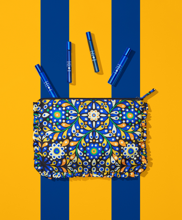 这些印花还出现在帕尔玛之水蓝色地中海系列其他产品,身体磨砂膏、沐浴慕斯、润肤乳和香薰蜡烛等产品的包装上,同时作为热衷于生活方式设计的 JJ·马丁(JJ Marti n )更是将他们运用在笔记本、化妆包、托特包和抱枕等日常用品中,为意大利悠长夏日仪式增添了一抹独特韵味。
