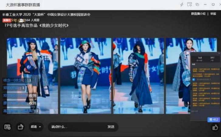 征稿期间,“大浪杯”进驻高校网络课堂直播间,远程视频连线与院校师生近距离沟通。组委会根据每所院校具体情况,分批次在钉钉、腾讯课堂、Zoom、雨课堂等专业平台进行大赛宣讲,包括东华大学、北京服装学院、江西服装学院、广州大学、广州私立华联学院、海南师范大学、大连工业大学、鲁迅美术学院等在内的20余所高校,参与了本次校园网络宣讲会。