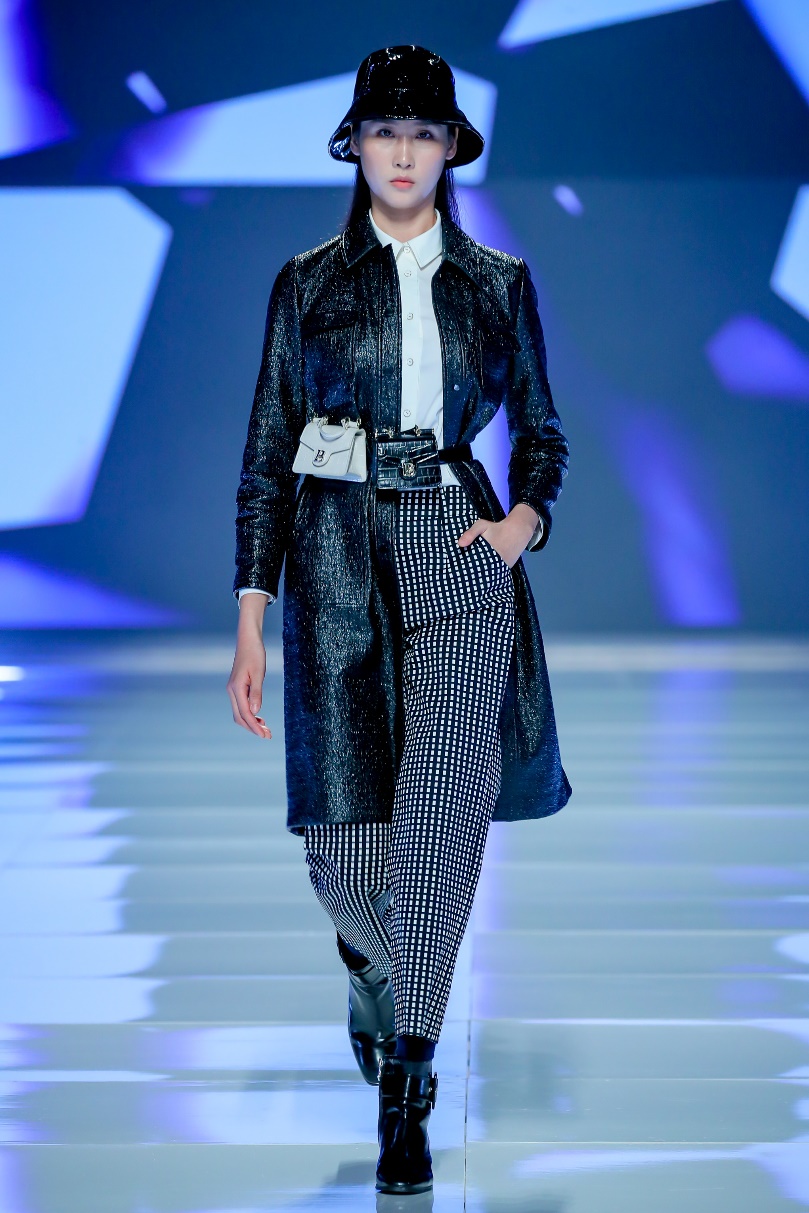 率先出场的是十二篮X马思彤的胶囊系列,设计师选择具有未来感的“蓝色系”作为主题色,打造出一组有着浓郁色彩但却层次细腻的造型,无论是双面可穿的夹克还是简洁的铅笔裙,都被赋予直率洒脱的廓形线条感。