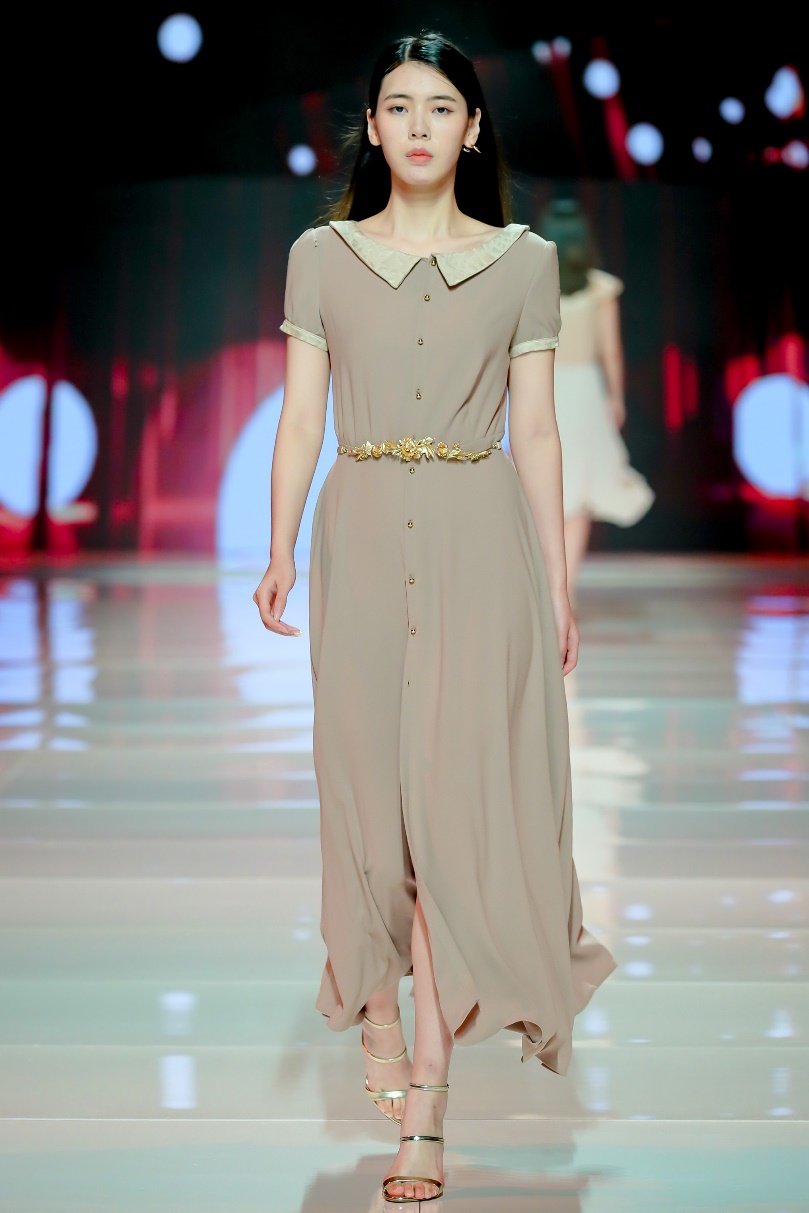 歌中歌旗下沙伦玫瑰品牌与新锐设计师何平的联名系列同样亮眼,以东方元素中国意象为灵感来源,何平用他的细腻笔触为这些重衣华服描上画作,将东方古典美与西方立体设计裁剪完美融合,将中国旗袍元素与当代时装廓形融合,打造跨越时空的新中国风时装。