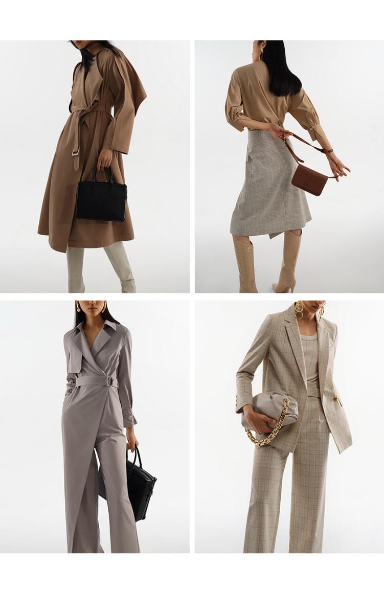 延续黑、白、灰、驼的品牌 DNA色彩, INSUN恩裳2021春季系列强调服装利落干练的廓形,营造理性的秩序感。格纹、一粒扣、不对称设计,取代繁复堆砌的装饰,展现女性刚柔并济的姿态。服装与都市生活连续性、整体性的节奏连接,感知定格于当下真实而坚定的自我。
