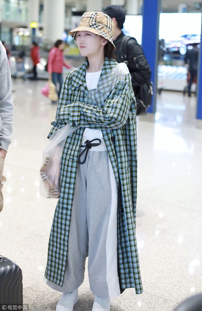 周冬雨素颜清爽 透明包包抢镜
