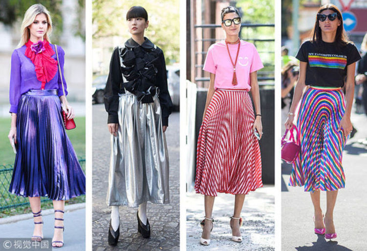 2018年4月11日讯,带有金属属性的单品无疑是今年春夏热门元素之一,如果有正准备入手的MM不妨考虑下百褶裙,经典实穿的百褶裙与金属色碰撞出焕然一新的火花,在春光灿烂的日子里换上波光粼粼的金属百褶裙,自带光芒做人群中最亮的星。 (图片来源:视觉中国)