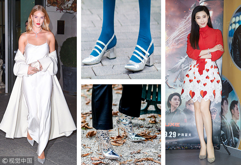 2018年4月10日讯,气温逐渐回暖衣服也越穿越少,想要一秒脱颖而出还得花点小心思,比如说一件独特的单品或是靓丽的色彩。极具金属质感的银色配合上尖头鞋的犀利,让你花枝招展的人群中瞬间亮起来,集精致高贵于一身的银色尖头鞋助你秒杀呆萌的猪猪女孩们。(图片来源:视觉中国)