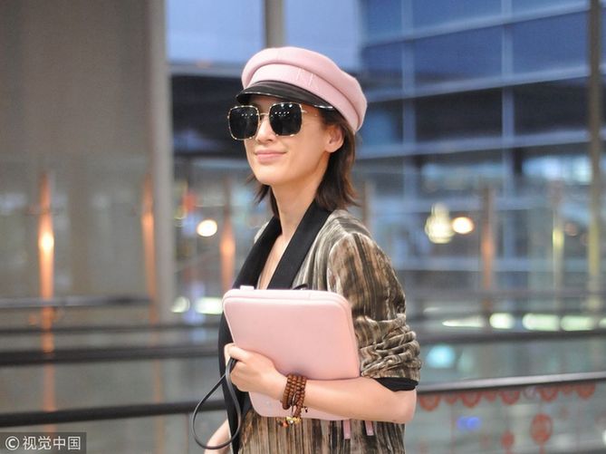黄圣依穿阔腿裤气场飞扬 粉帽粉包少女心