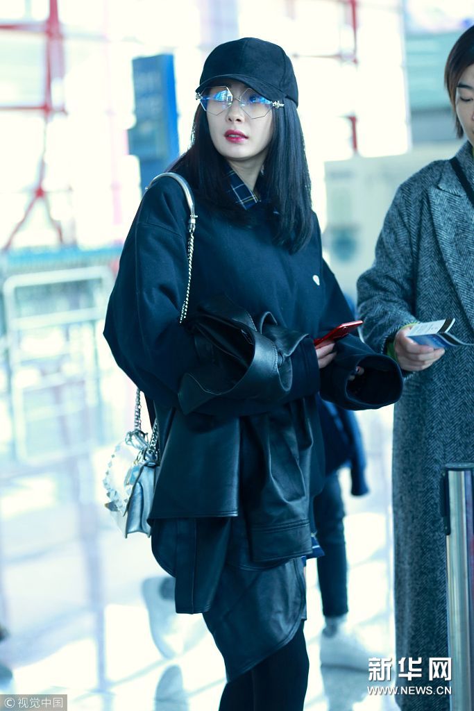 杨幂现身首都机场。她头戴黑色麂皮鸭舌帽,银色六边形眼镜,身穿Balenciaga黑色皮夹克,内搭Vetements X Champion黑色卫衣,内搭Off-White蓝色格纹衬衫,肩背Fendi Kan I银色亮面铆钉装饰链条包,下穿黑色丝袜,脚踩Off-White棕黄色厚底系带马丁靴。