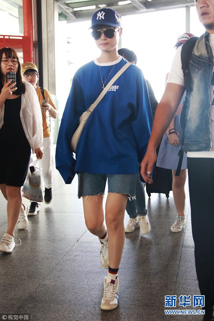 酷girl!李宇春黑超遮面一身蓝色look现身机场