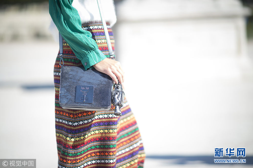 2015年10月3日讯,巴黎,当地时间2日,2016巴黎春夏时装周:街头潮人(第四天)。 (图片来源:视觉中国)